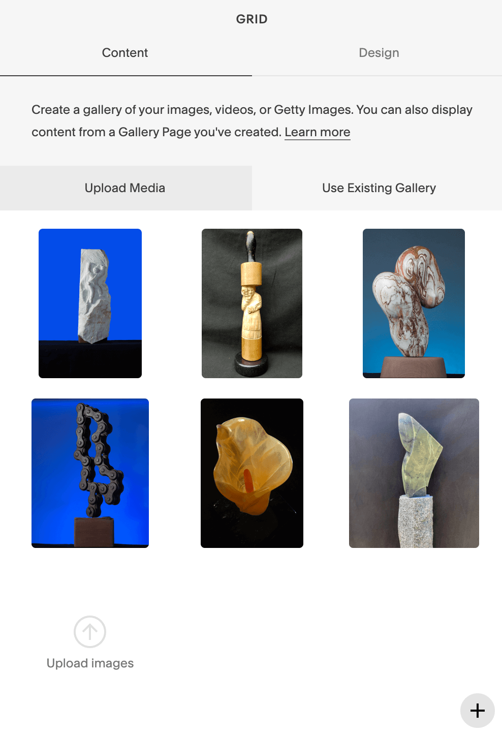 When you click EDIT on a Gallery block, it will expand to the first image on the right. If you click the little + sign, you can ADD (UPLOAD) a new image (another option is to use your site’s own LIBRARY). If you scroll down, you will see alt way to upload images to the Gallery.